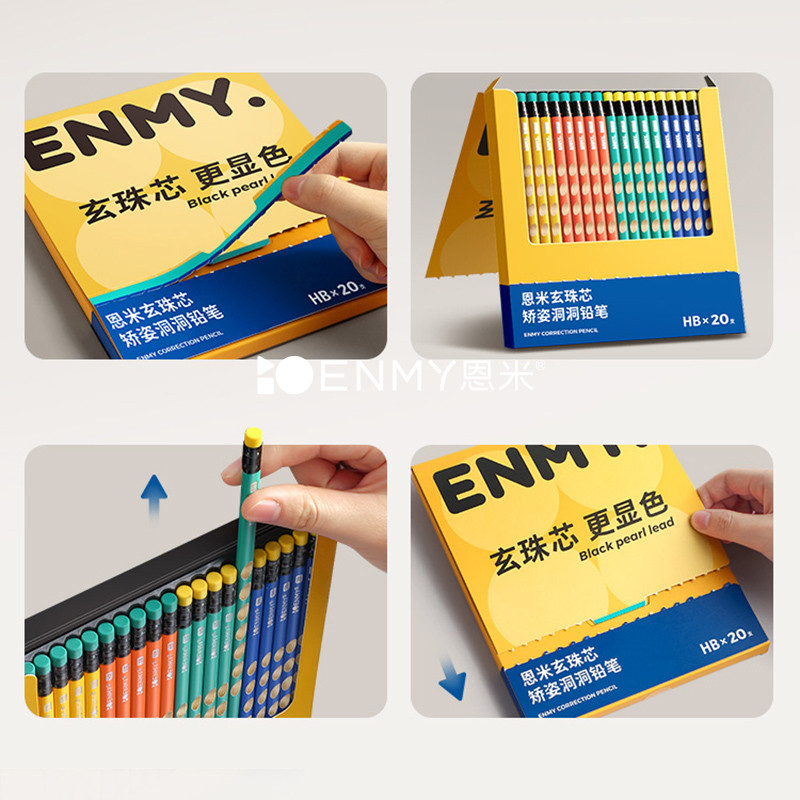 ENMY Graphite Pencil HB 2B / Pensil Kayu HB 2B Isi 20 PCS/Box Desain Segitiga Ergonomis