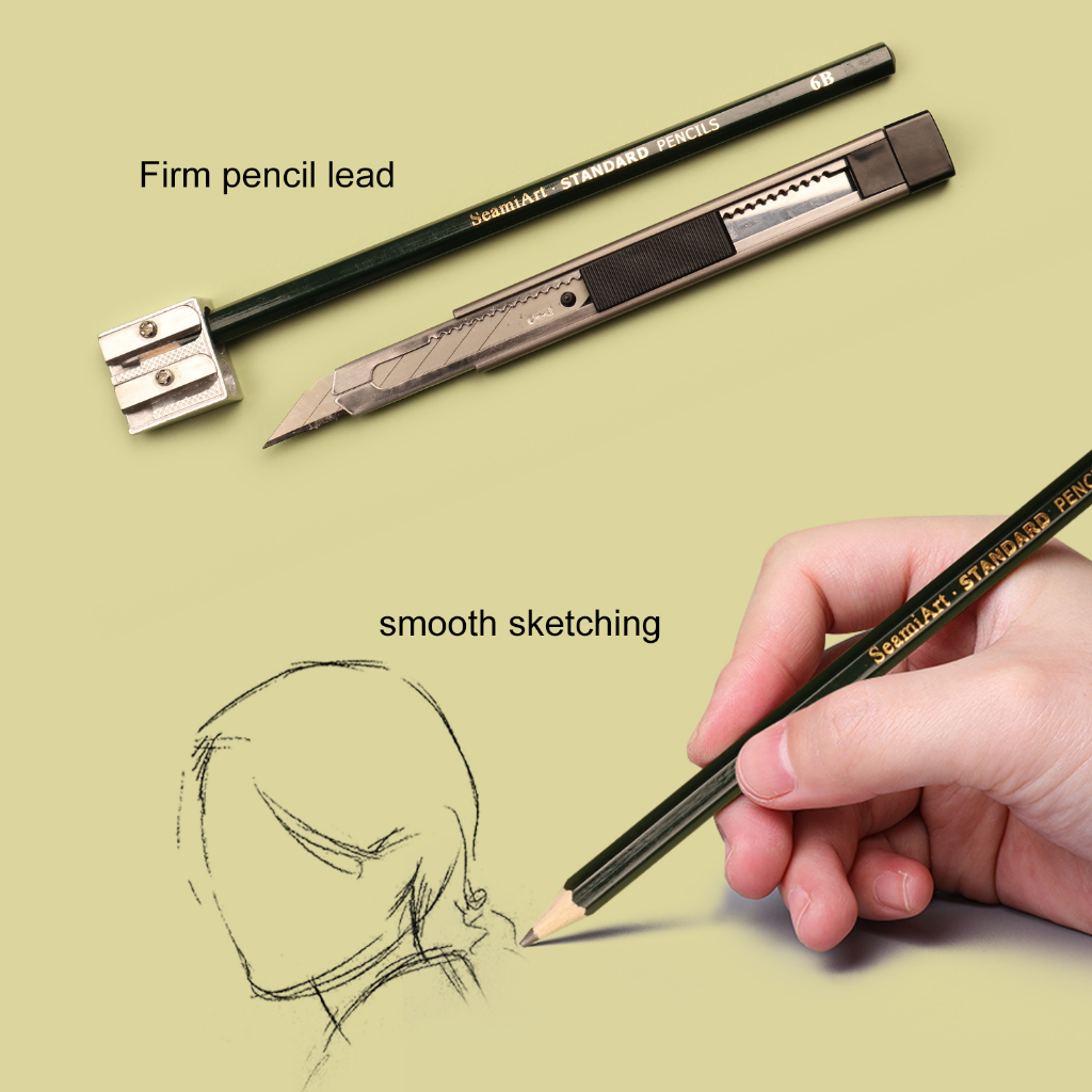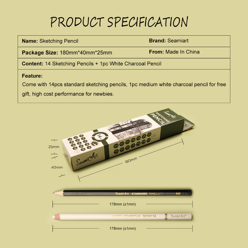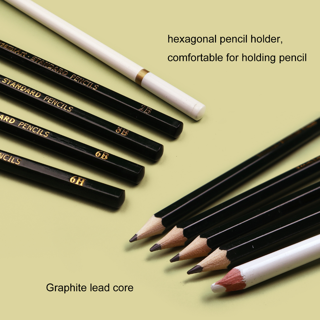 SeamiArt 15pcs Sketch Pencil set Pensil sketsa Free White Charcoal Pencil 6H 4H 2H HB B 2B 3B 4B 5B 6B 7B 8B 10B 12B