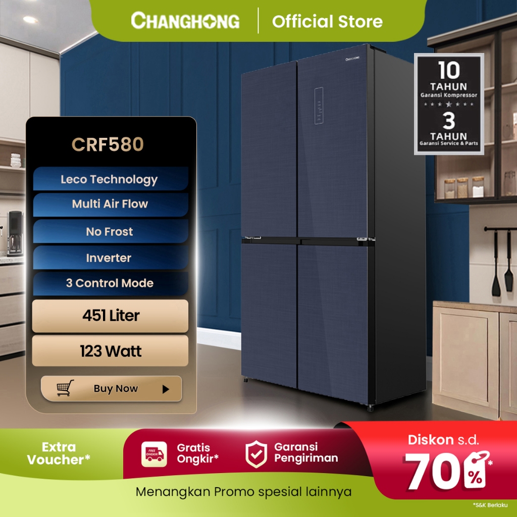 KULKAS 4 PINTU CHANGHONG 451L KULKAS MULTI DOOR INVERTER CRF580-BLACK ( KULKAS ANTI BUNGA ES ) (KULKAS TEMPERED GLASS)