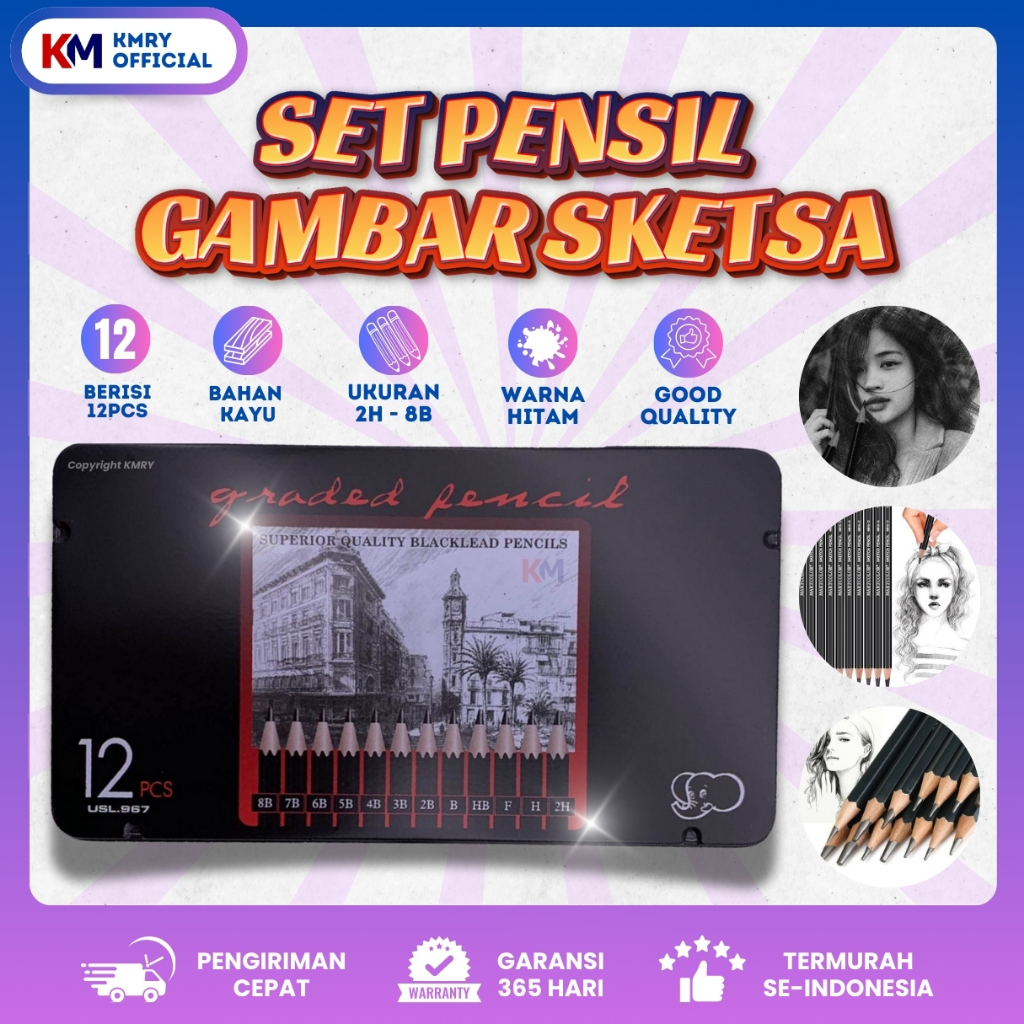 KMRY 12 Pcs Pensil Gambar Sketsa Set Lengkap 2H H F B HB 2B 3B 4B 5B 6B 7B 8B Charcoal Pensil Set