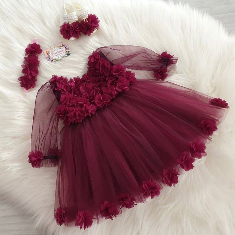 Dress Anak Perempuan Pesta Maroon Bunga-Bunga