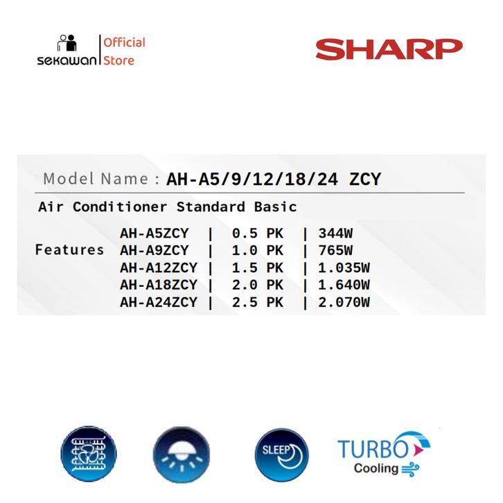 AC Sharp 1/2 pk Low Watt AH-A5ZCY Daya 344 Watt