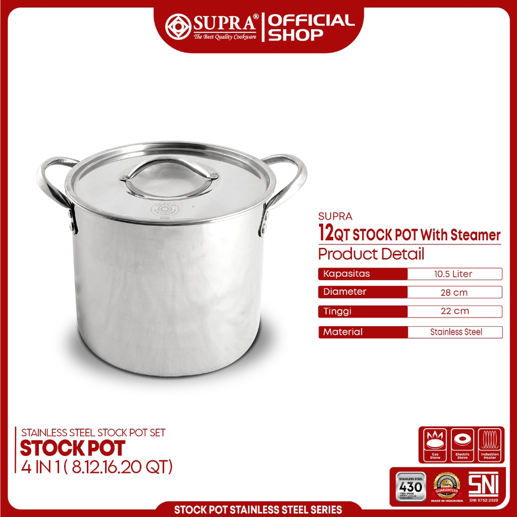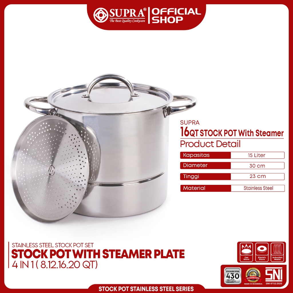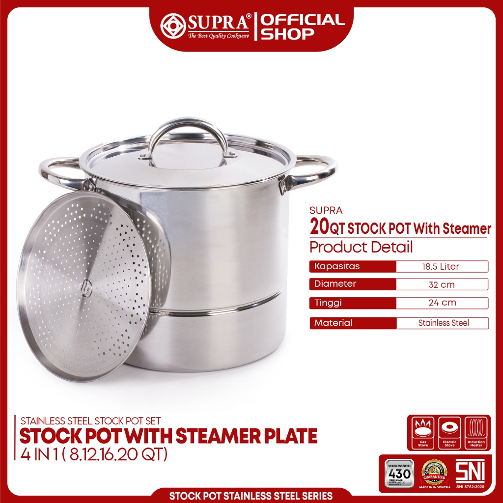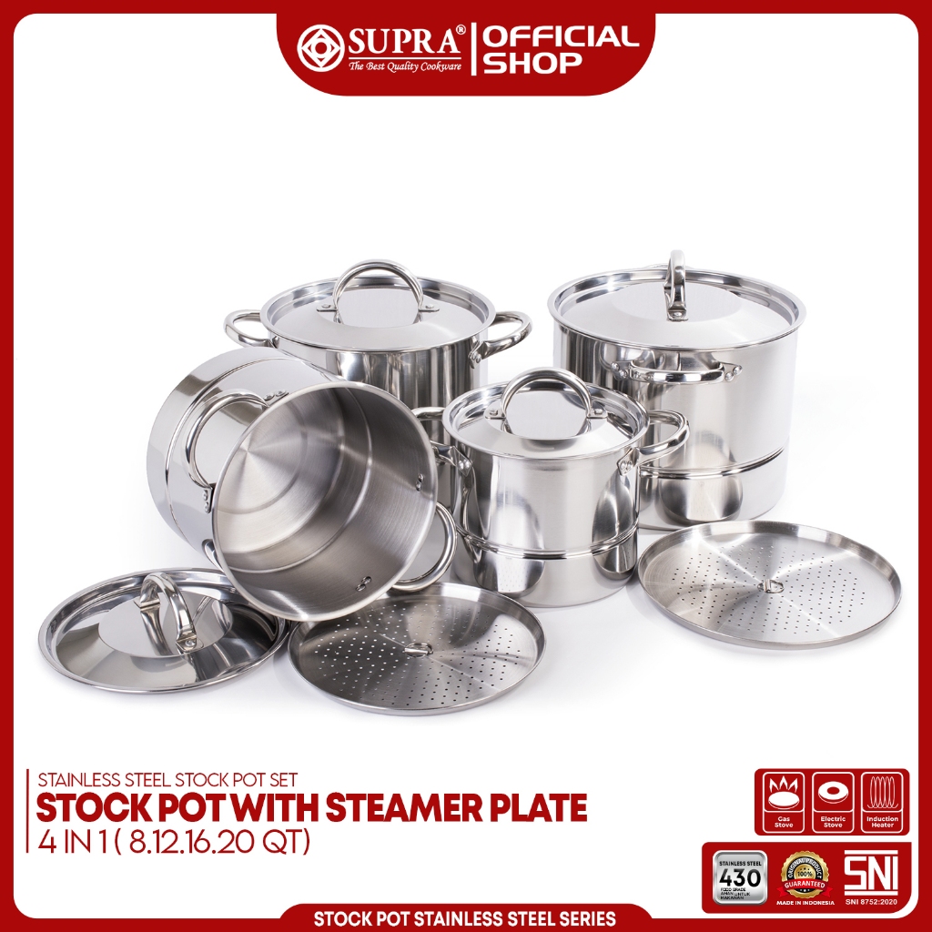 Supra Panci Stainless Steel 4 In 1 Stock Pot Tutup Stainless Steel