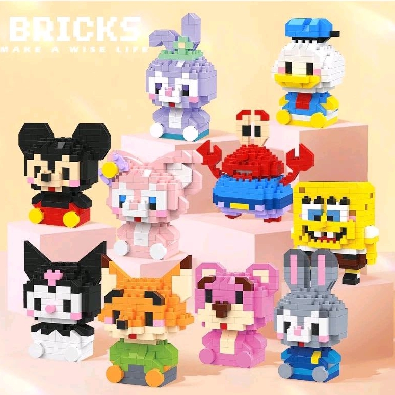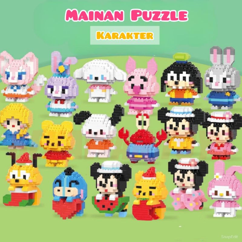 Mainan Puzzle Karakter Balok Susun Bricks Kartun Mainan Anak Edukasi DIY