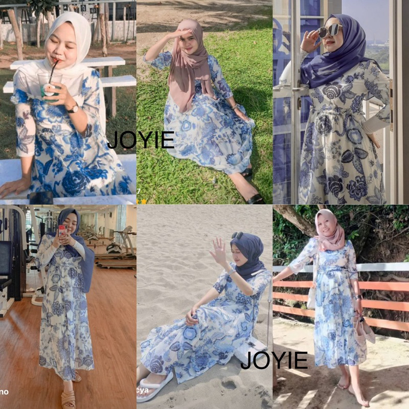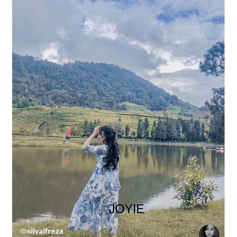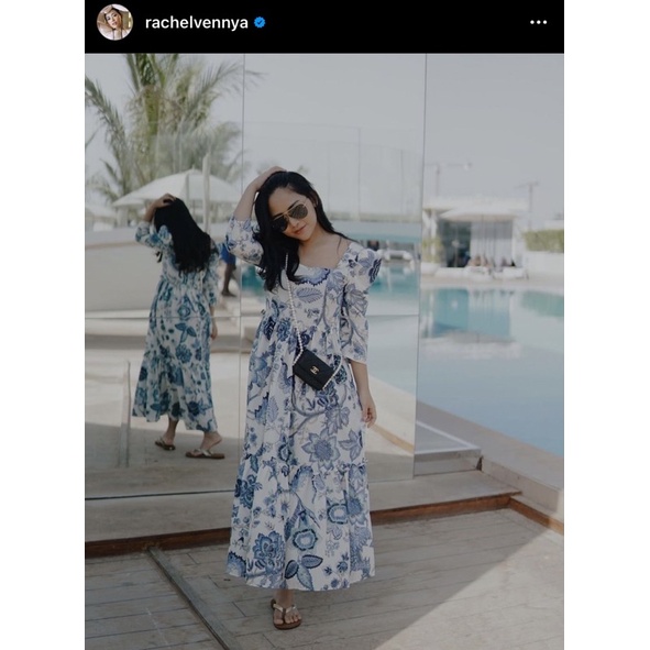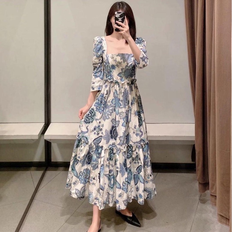 Sarah 사랗 Dress Korean Bohemian Lengan Panjang Vintage Casual Midi Puff Square Karet Maxi Floral Bunga Dlower Korea Hijab