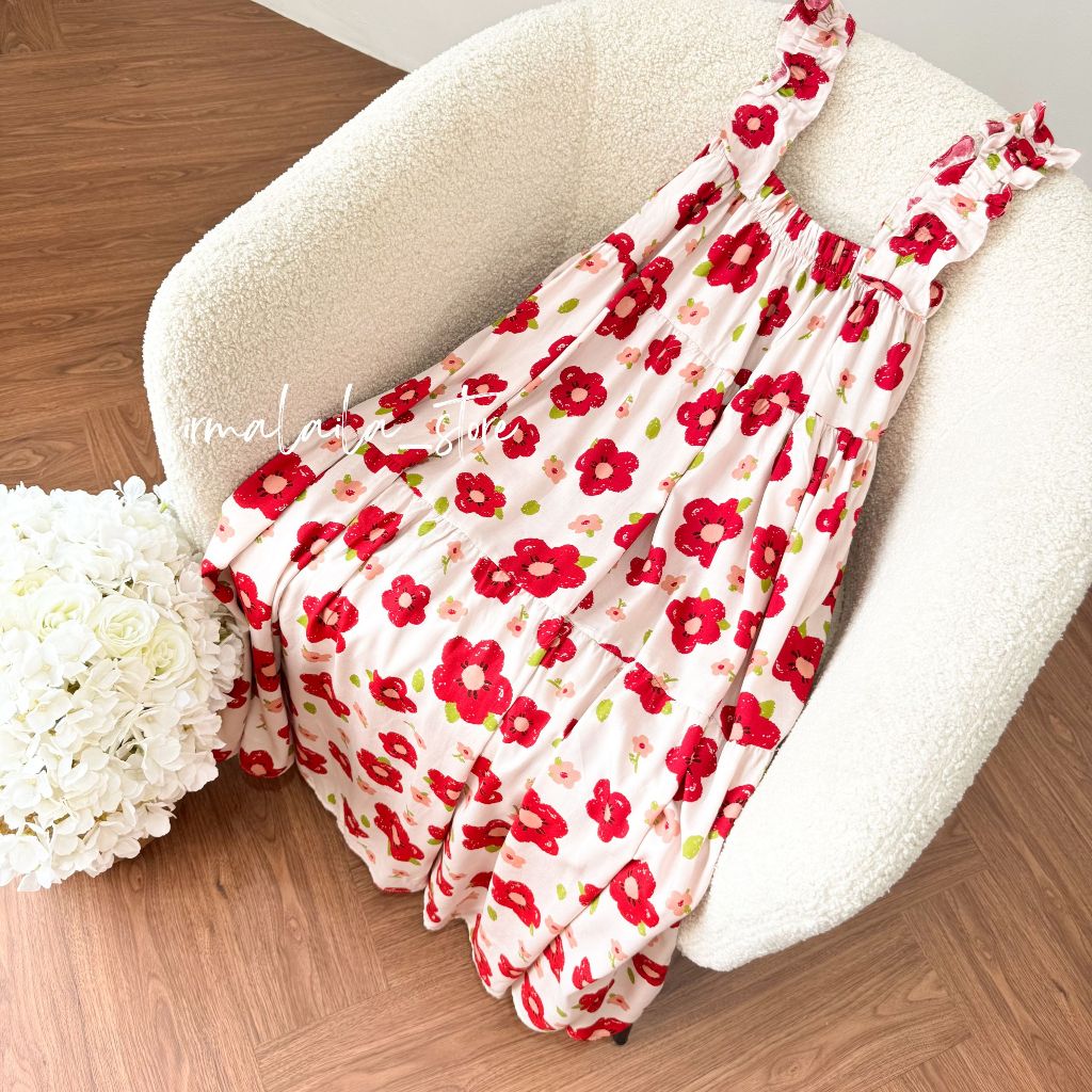 Irmalaila - Moeza Dress Midi Katun Rayon Motif Dress Pantai Nyaman Adem Bumil Busui Friendly
