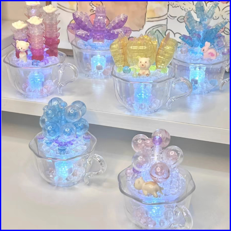Xinz Block Building Tanaman Pot Cangkir Kristal Mainan Hadiah Anak-anak Toys Balok Susun Tanaman Pot Sukulen Kristal Ber