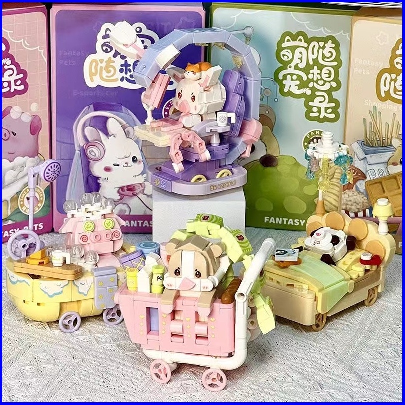 Xinz Mainan Bricks Lucu Hewan Peliharaan Block Caprice Catatan Kocok Kecil Model Blok Kue Blok Bangunan Teka-teki Peraki