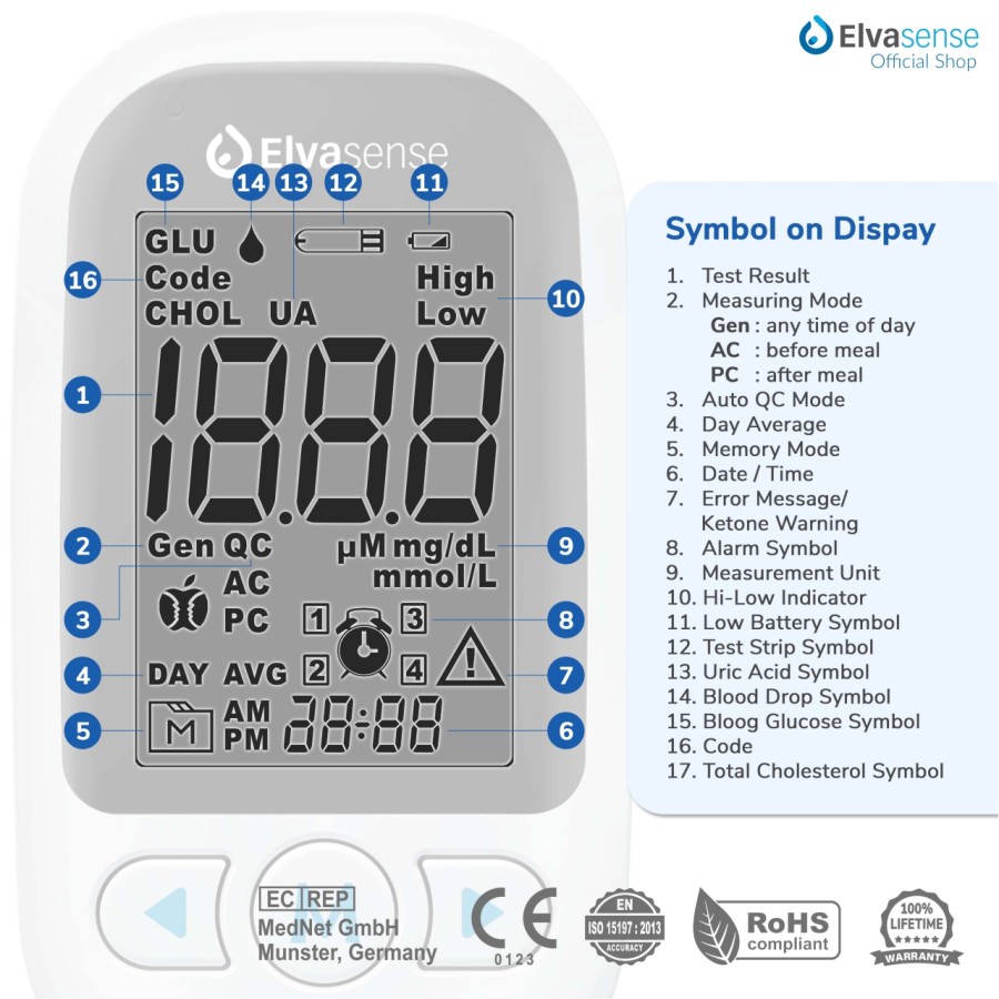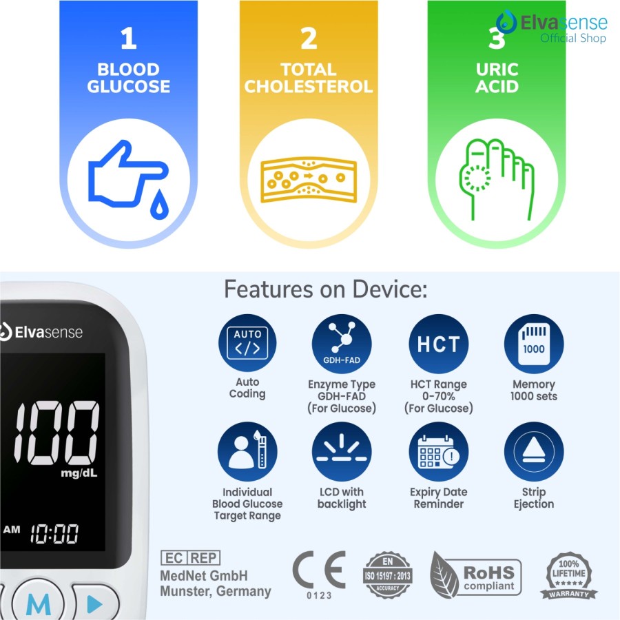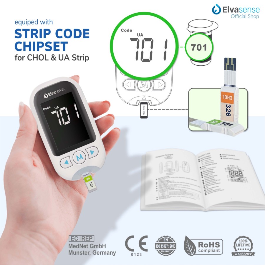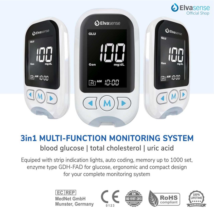Alat Tes Gula Darah Kolesterol Asam Urat Elvasense Alat GCU 3in1 Original