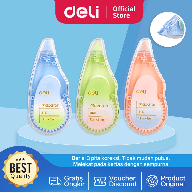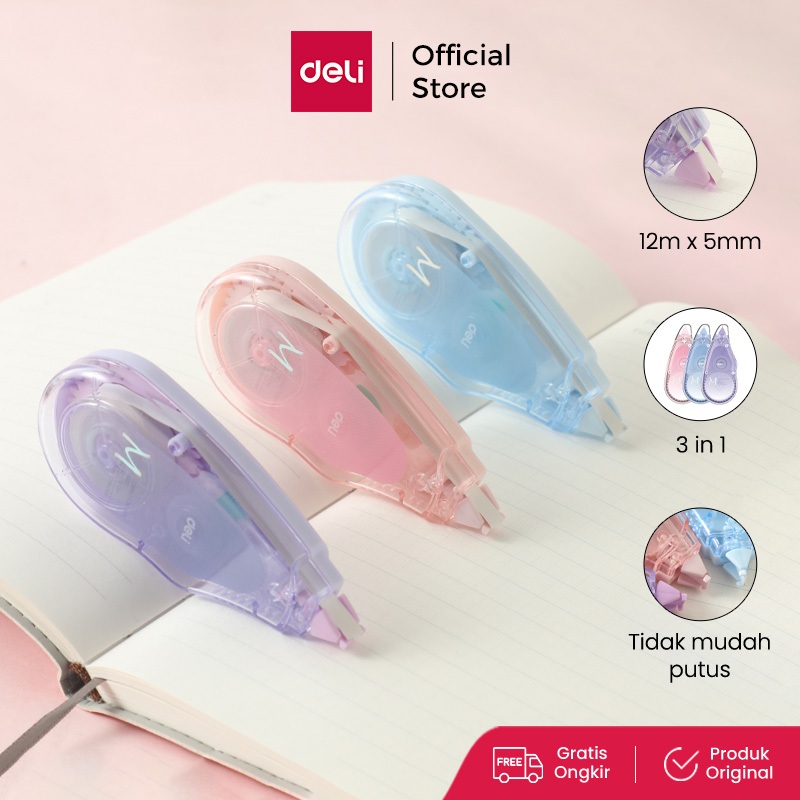 Deli Correction Tape / Tip X Kertas / Pita Koreksi 12m*5mm Isi 3pcs Desain Ergonomis Praktis EH333