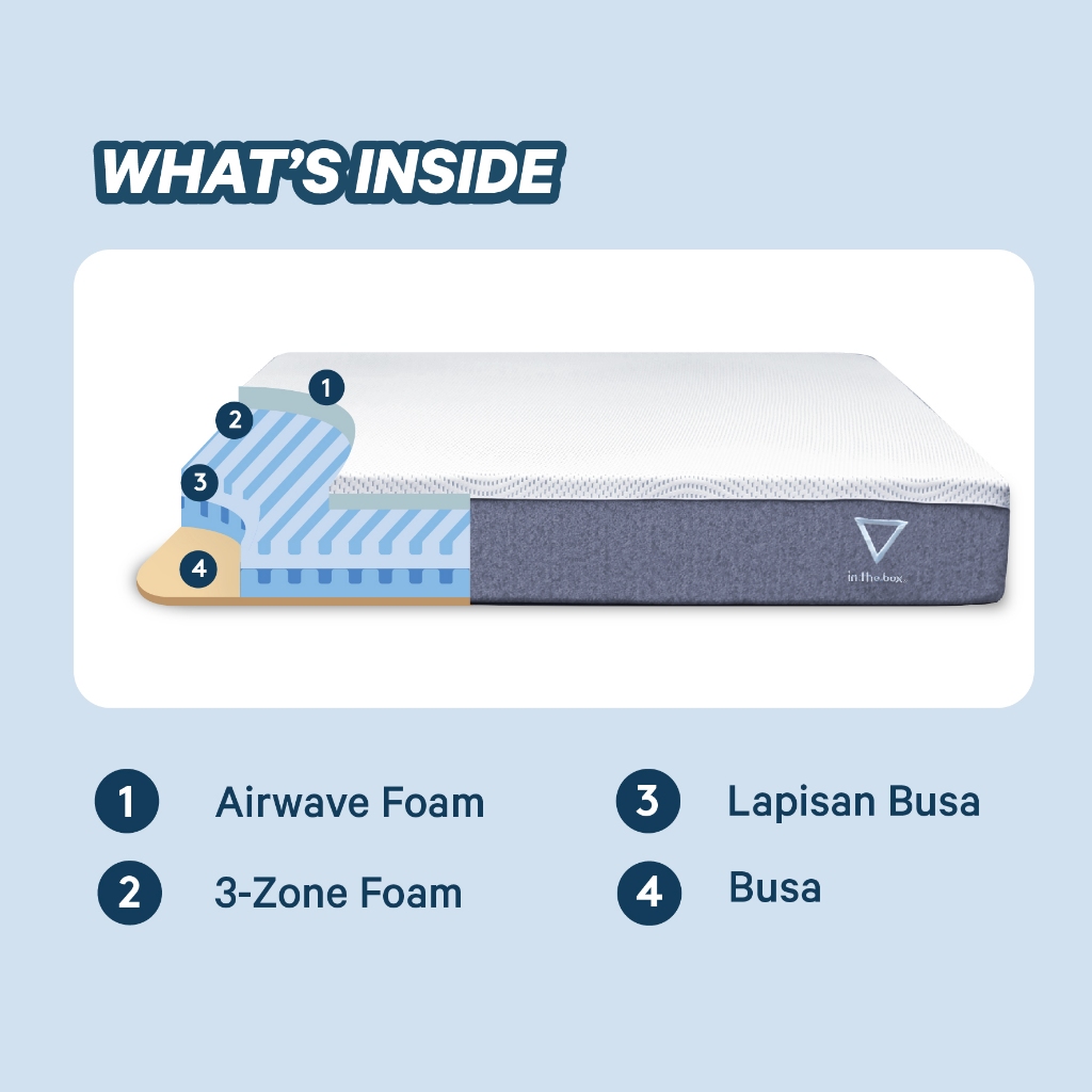[PROMO] KASUR INTHEBOX THREE HYBRID AIRWAVE FOAM | GRATIS KASUR BED TO GO + BANTAL | UKURAN 90X200, 100X200, 120X200, 14