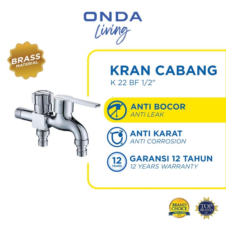 ONDA Kran Cabang Mesin Cuci Dua Cabang Kuningan Anti Bocor K 22 BF 1/2"
