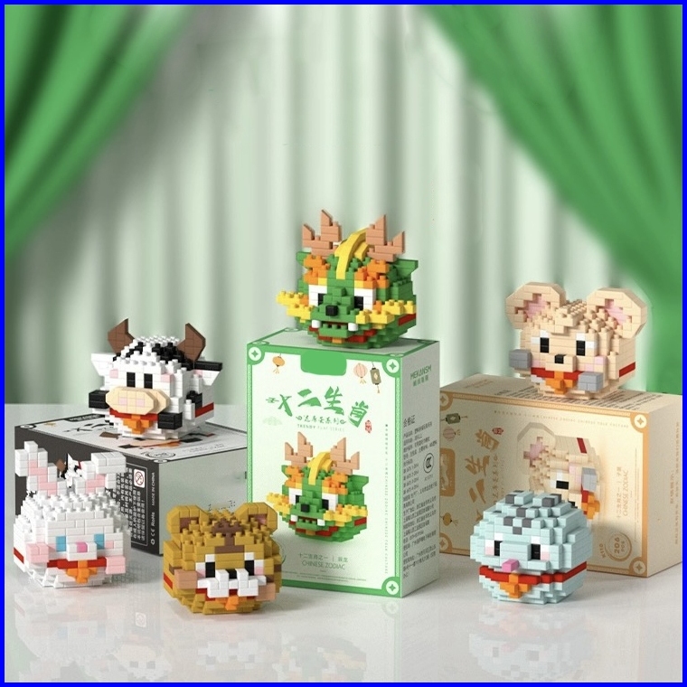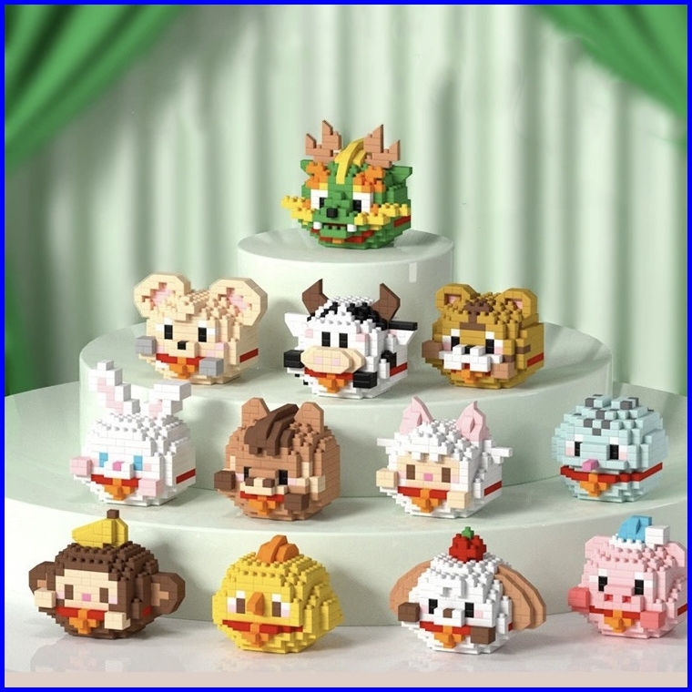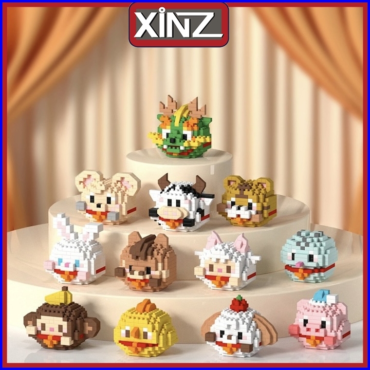 Xinz Blok Bangunan Zodiak Cina Bricks Mainan Pendidikan Zodiak Block Mini Ornamen Boneka Zodiak