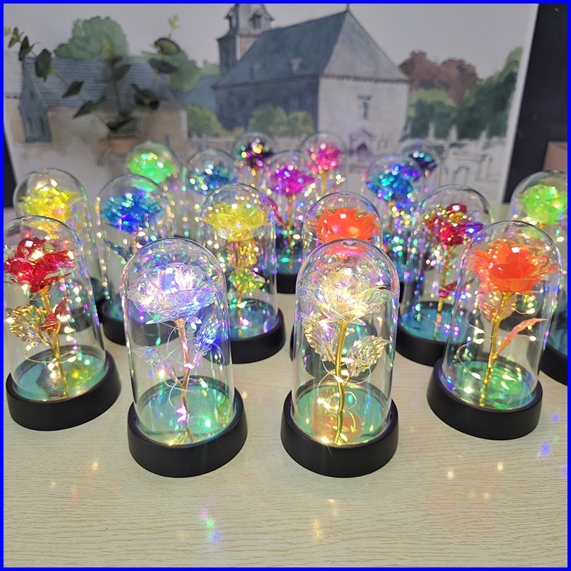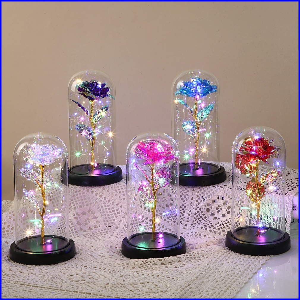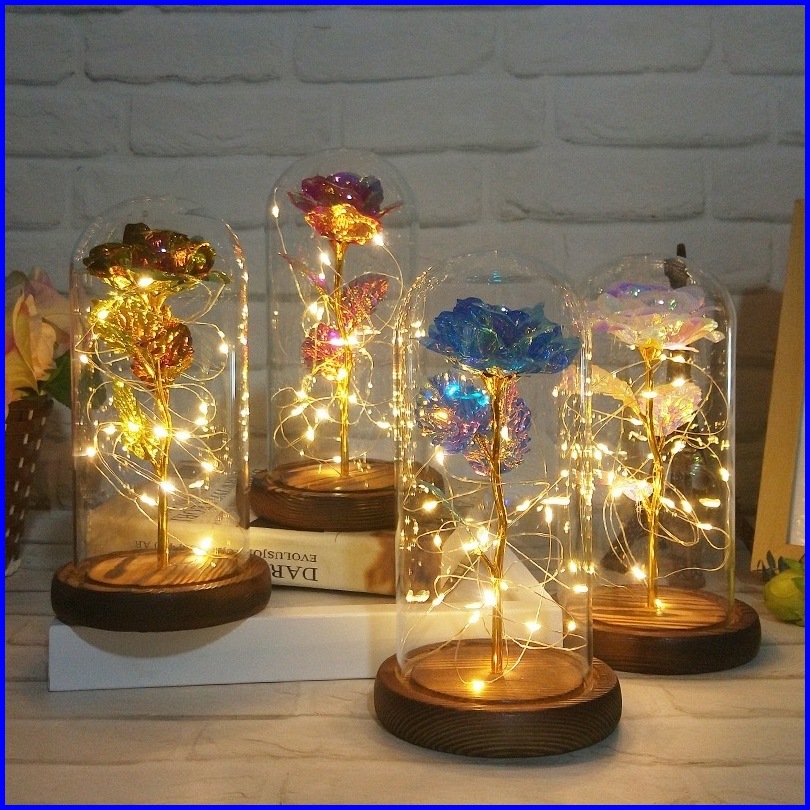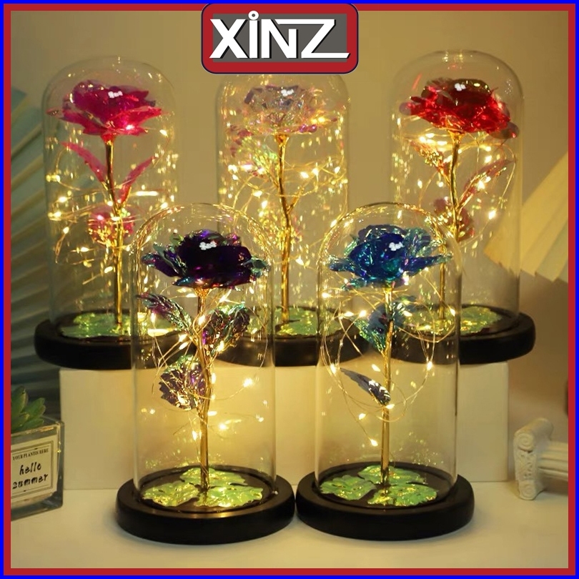 Xinz Lampu Led Mawar Bunga Plastik Beauty And The Beast Rose Valentine Hadiah