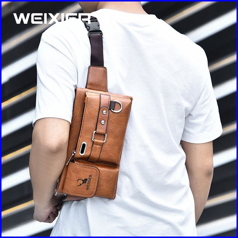 Weixier 8110 Tas Selempang Pria Kulit Waist Bag Anti Air Wx-os