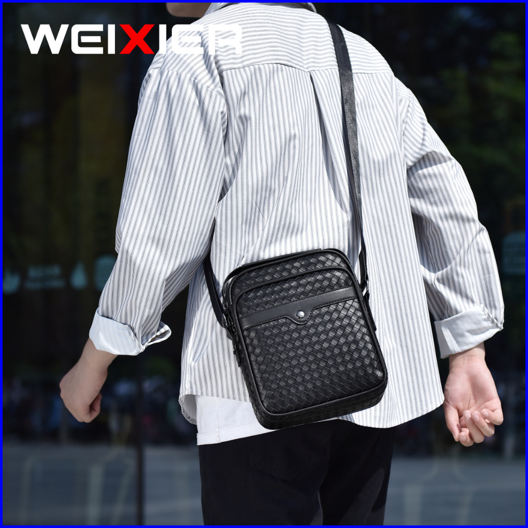 Weixier D281 2 Tas Selempang Pria Kulit Anyaman Sling Bag Premium Anti Air Wx-os