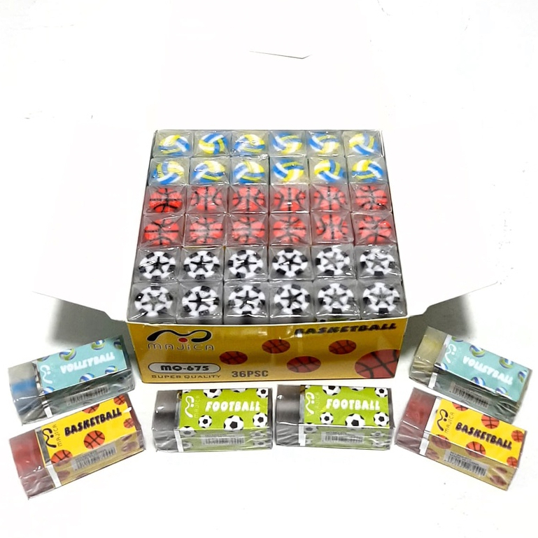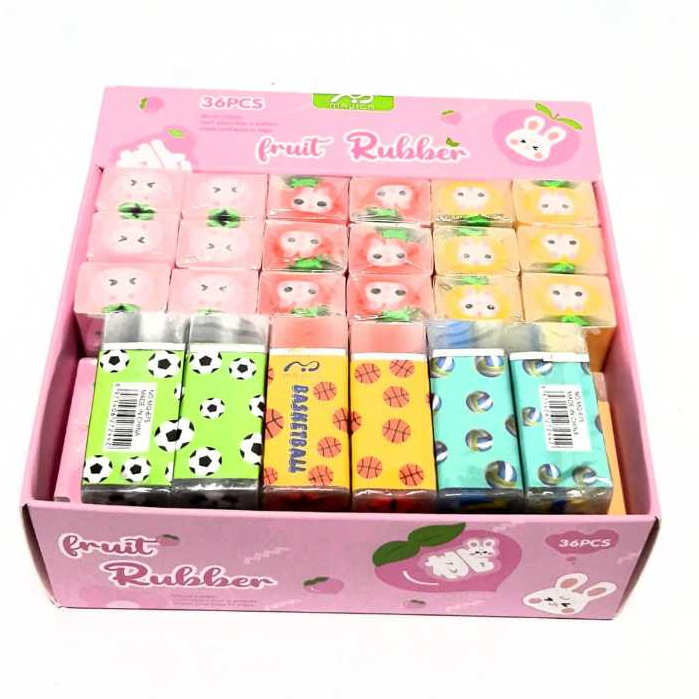 Harga Grosir ( 1kotak /36pcs ) Penghapus Eraser Karakter Bola Dan Buah Ukuran Besar