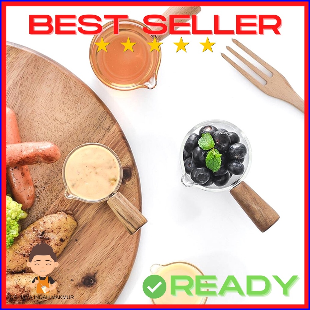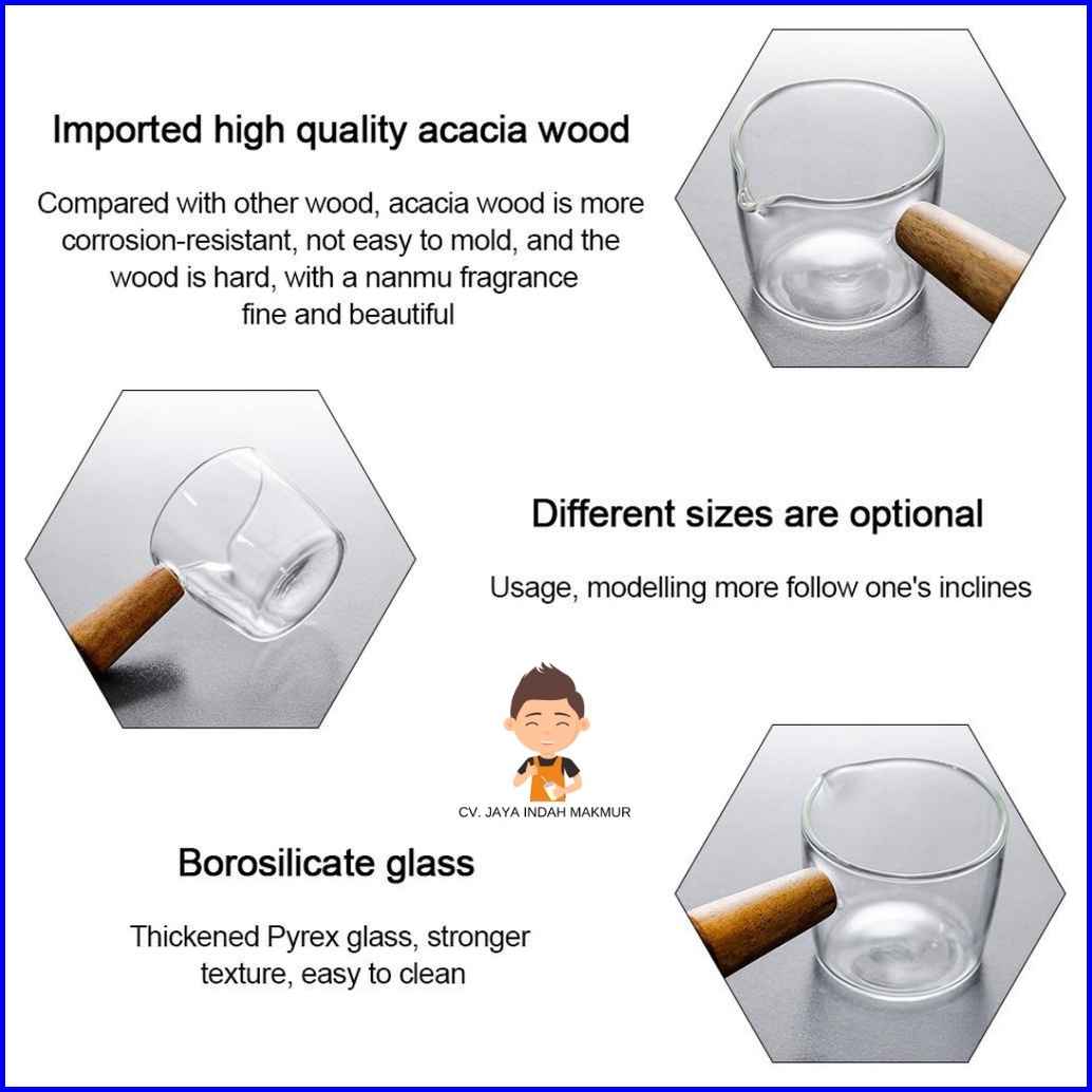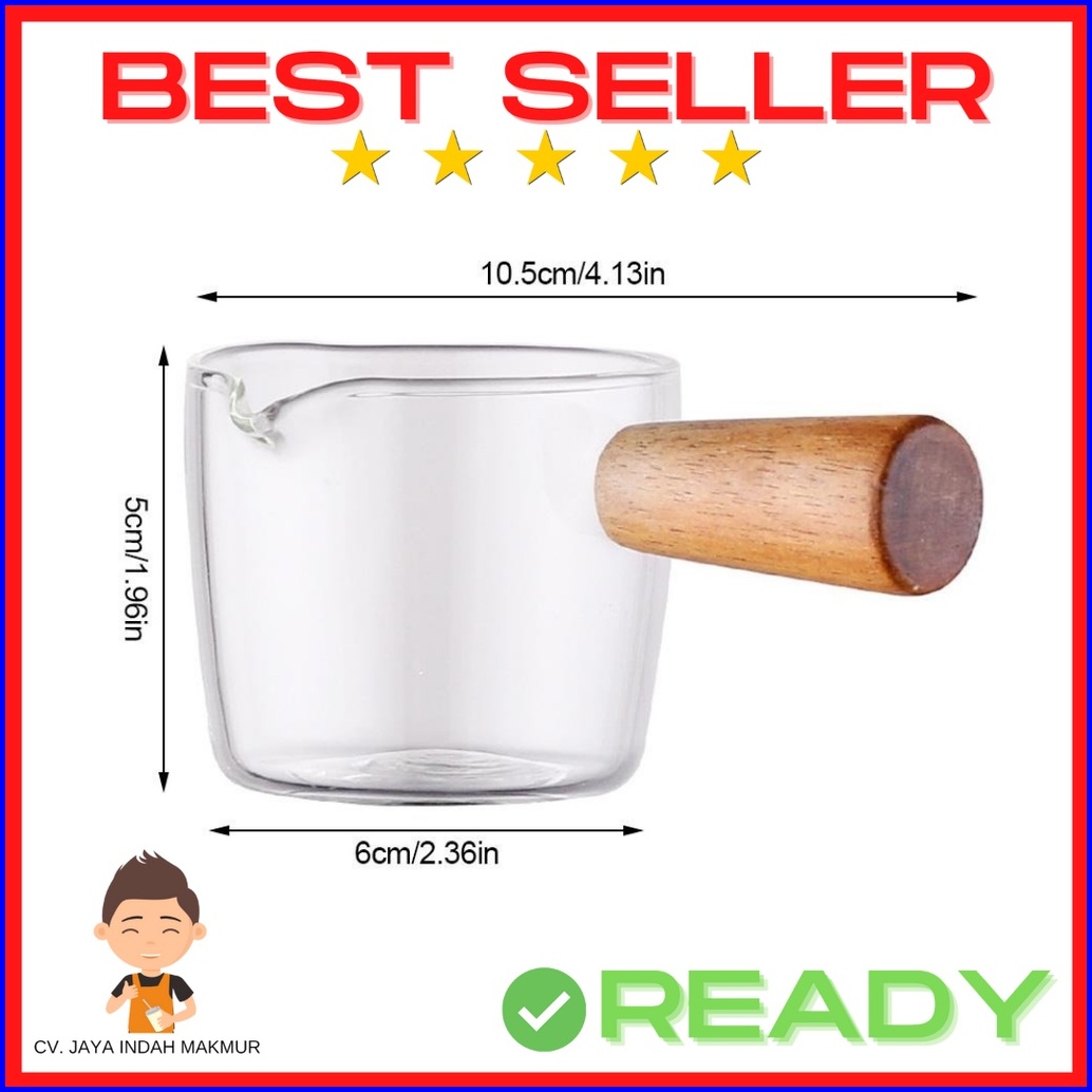 Gelas Pitcher Kaca Handle Kayu Kopi Latte Art Skm Tempat Sauce Steak 50ml 75ml 100ml