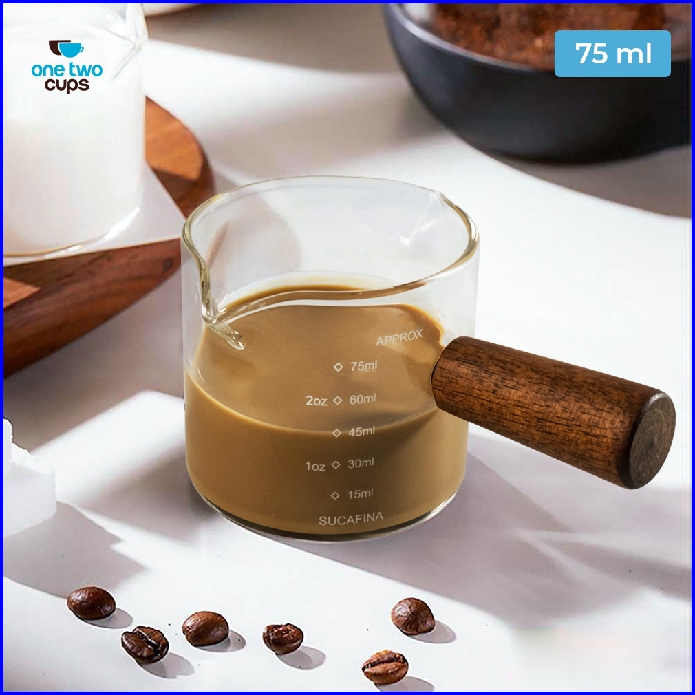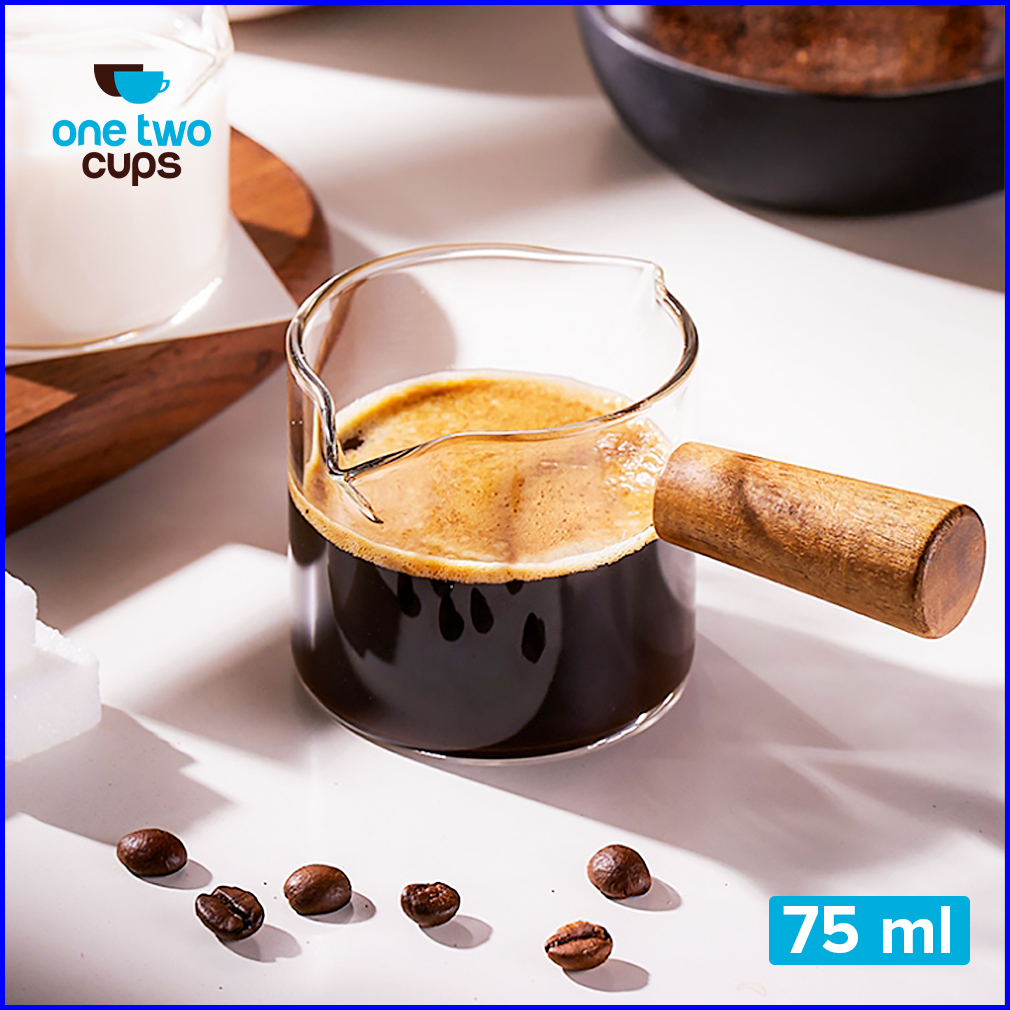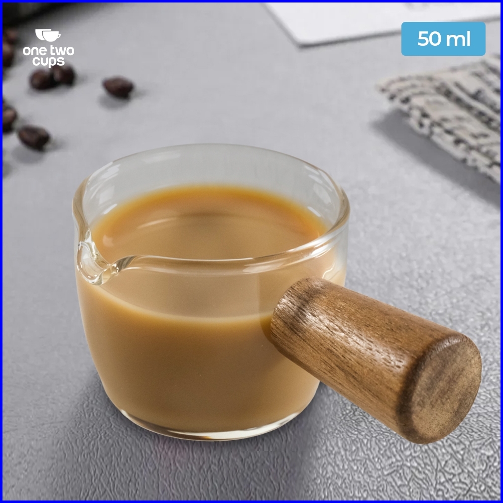 Gelas Pitcher Kaca Handle Kayu Kopi Latte Art Skm Tempat Sauce Steak 50ml 75ml 100ml