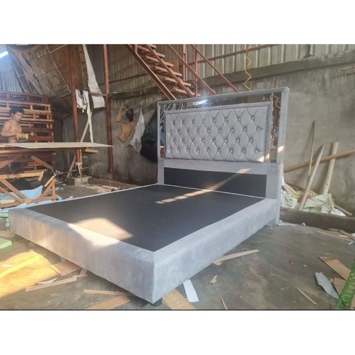Divan/difan Tempat Tidur Sandaran List Cermin T135 kain Bludru