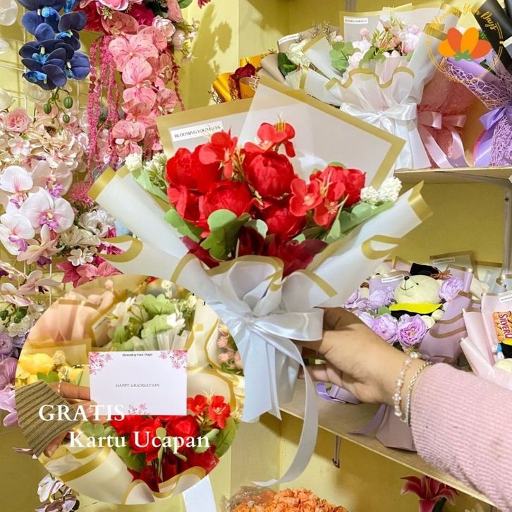 Hampers Wisuda Buket Bunga Bucket bunga Sidang Wisuda Lamaran Tunangan Nikahan / Anniversary Flower Bouquet bucket