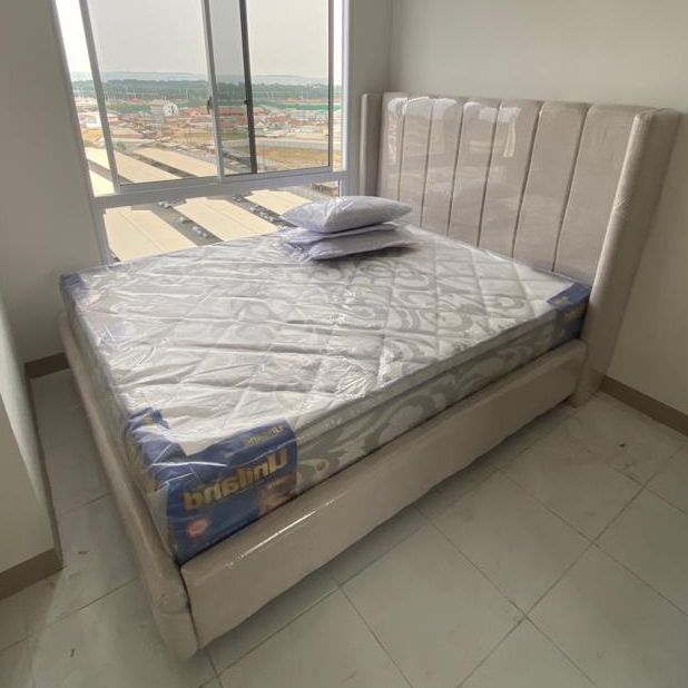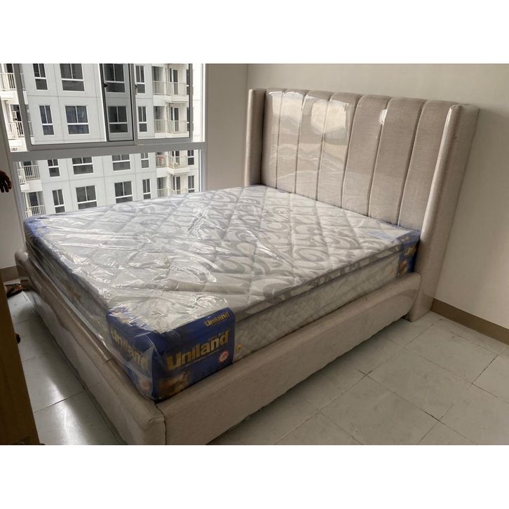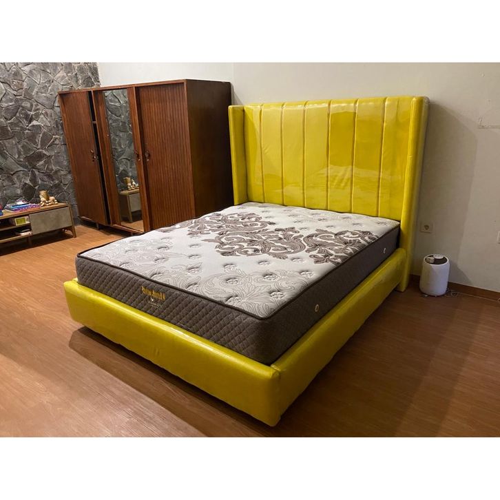 Divan Tempat Tidur Premium Kolam Sandaran Salur T150 kain Daphnie Tanpa Kasur