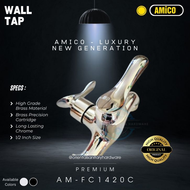AMICO AM-FC1420C Keran Kran Air Cabang BRASS Materials & Cartridge Chrome Engkol 1/2inch Wall Tap
