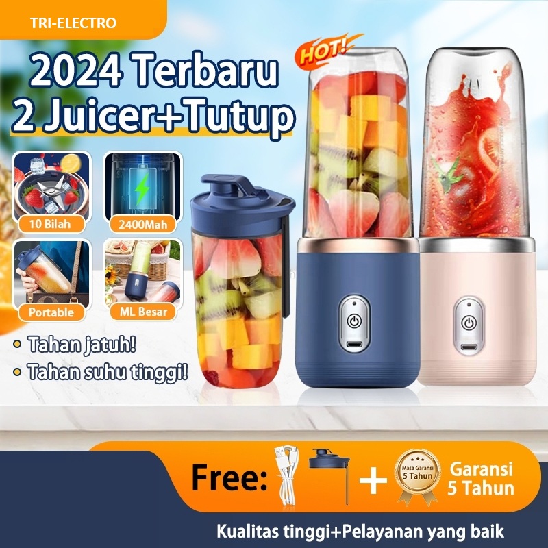 Blender Portable Mini 400Ml+400Ml Juicer Portable 10 Pisau Blender Jus Usb Juice Blender Elektrik Rechargeable Mini Mixe