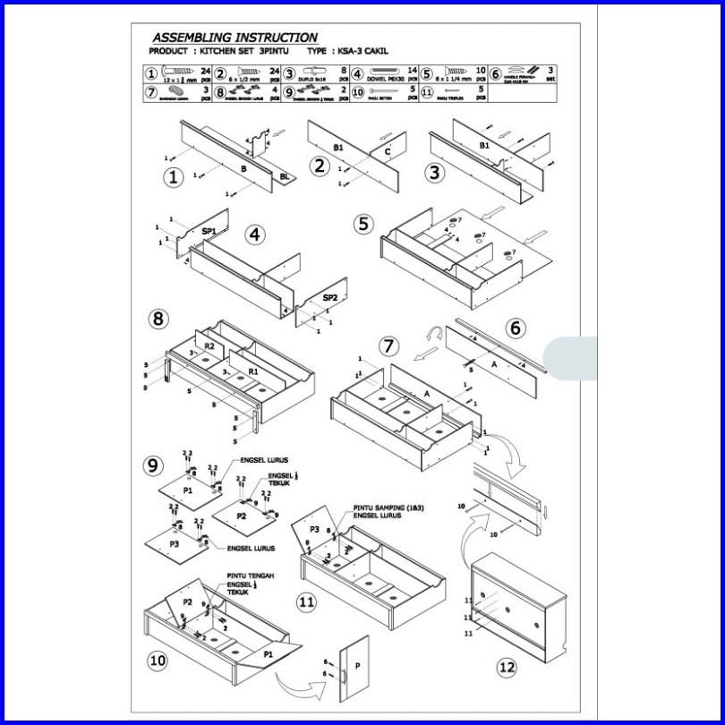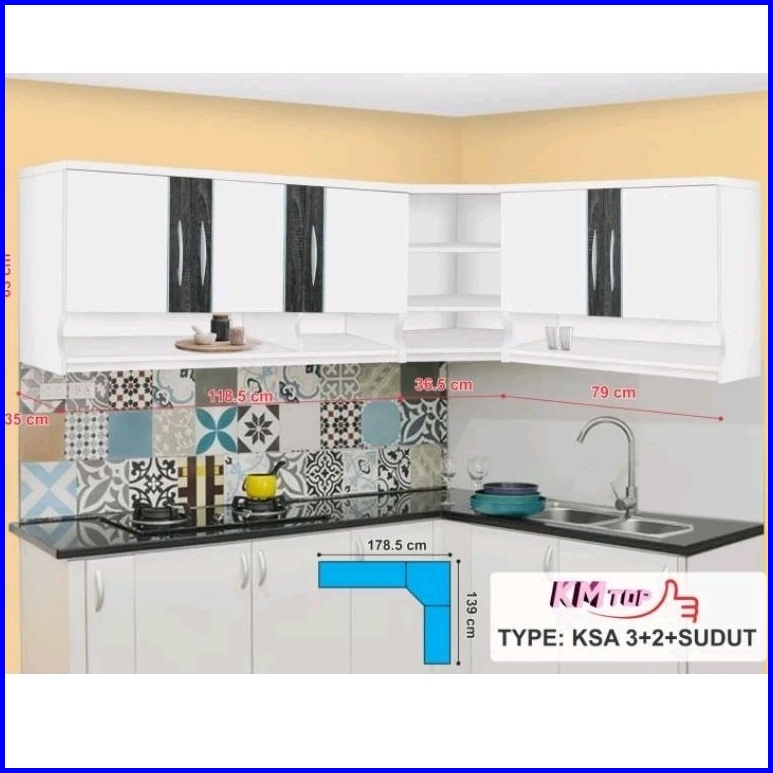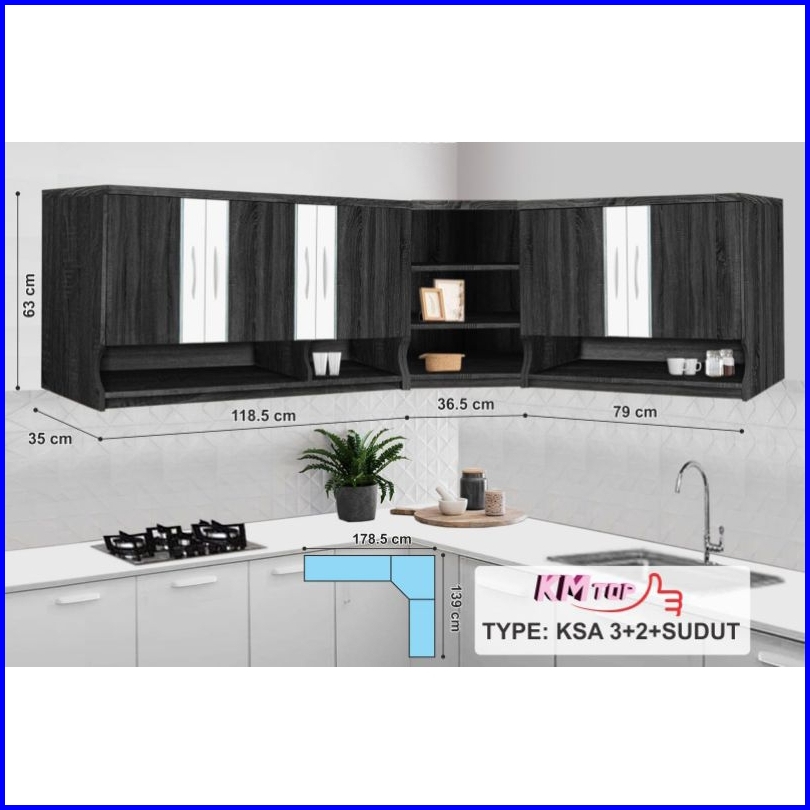 1 Set 3pintu 2pintu Sudut Kitchen Set Lemari Gantung Minimalis Ksa Kmtop