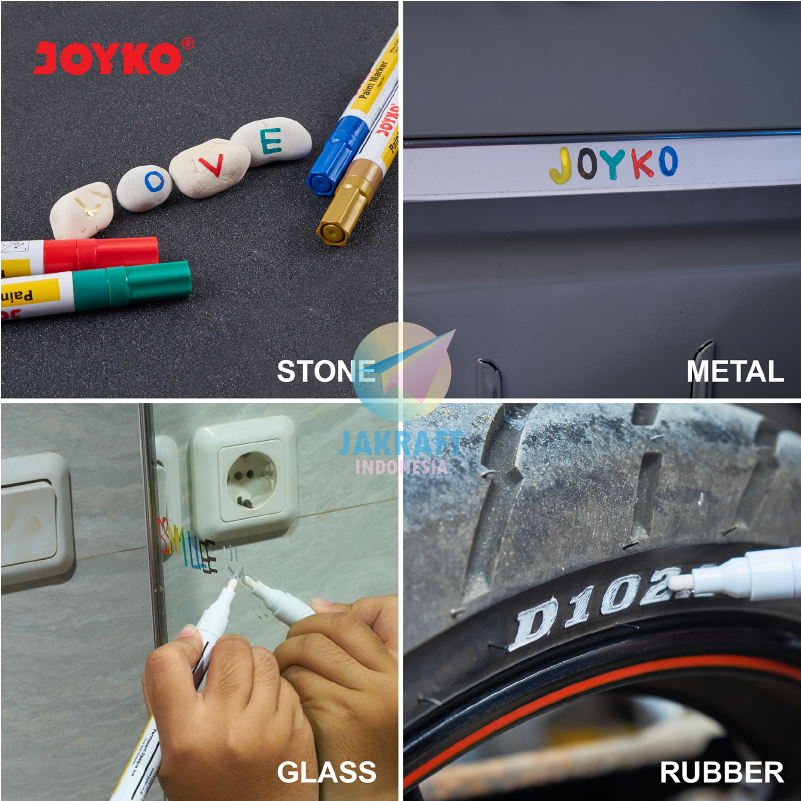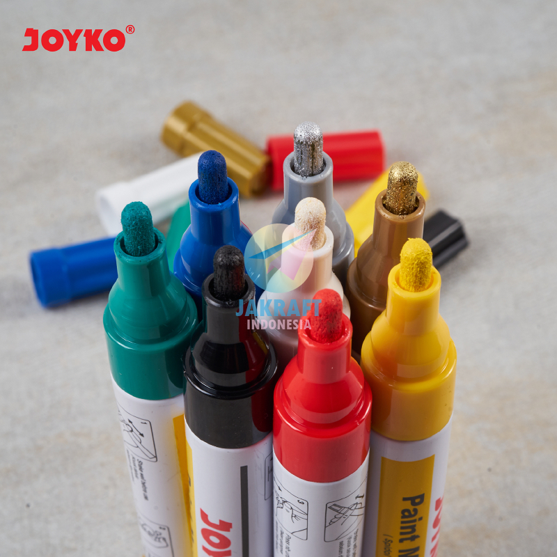 (12 Pcs) GROSIR Spidol Permanen Paint Marker Tidak Bisa Dihapus JOYKO PTM-37~44 Putih White / Hitam Black / Biru Blue /