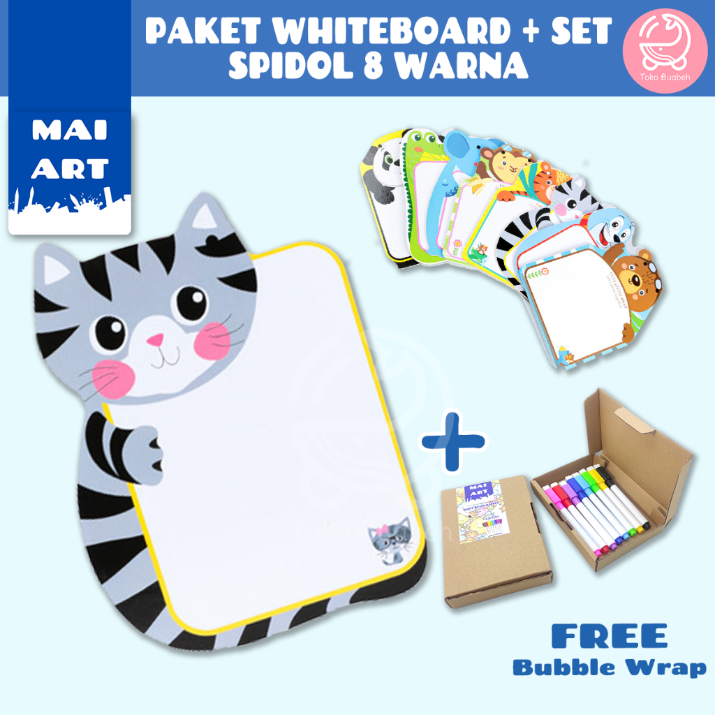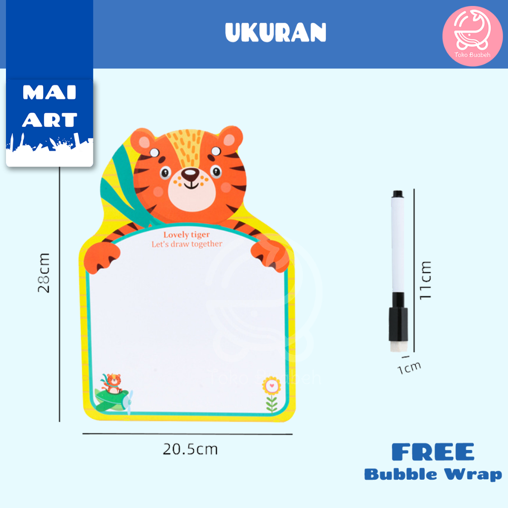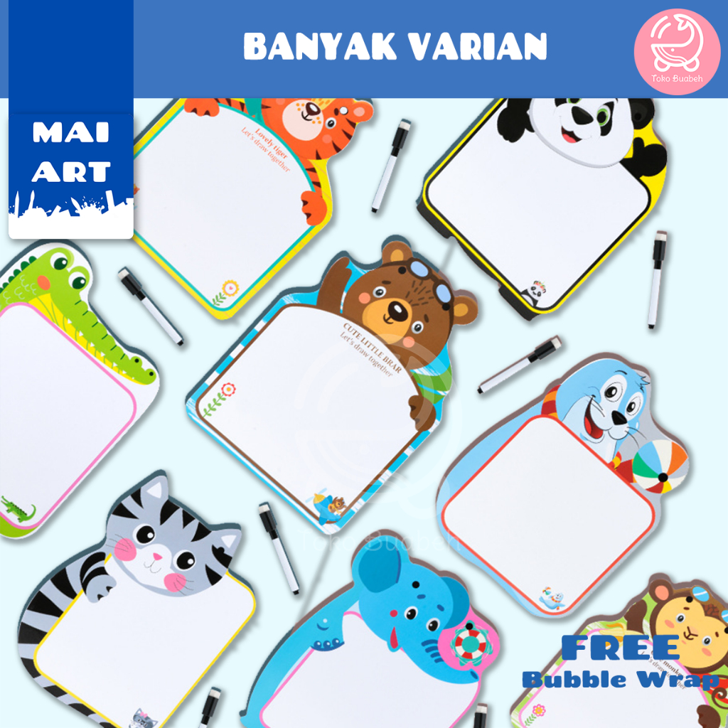 Mai Art Paket Whiteboard Anak Dan Set Spidol 8 Warna Papan Tulis Gambar Binatang Bahan MDF Penghapus