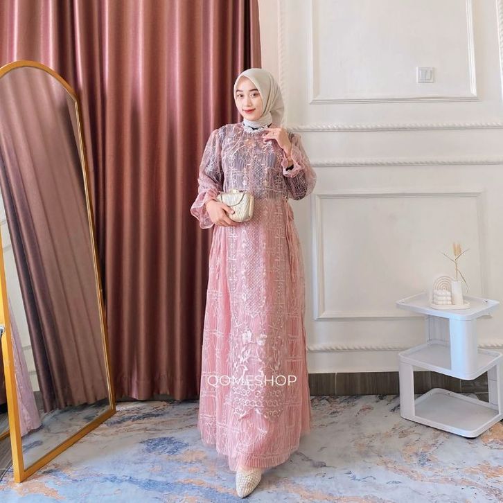 Outer Brokat Kezia Dress Kondangan Modern Terbaru Wanita Bruklat Mix Tile Mewah Elegan Terbaru Kekinian