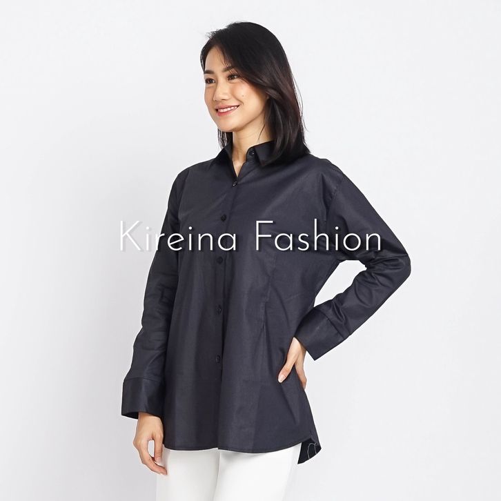 KIREINA - Kemeja Putih Wanita Lengan Panjang Hem Formal Kantor Bahan Katun Stretch Melar