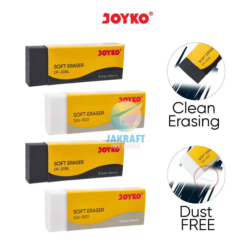 (20 Pcs) GROSIR Penghapus Pensil Besar JOYKO ER-20BL Hitam Black / 526-B20 Putih White Dust Free Eraser Super Bersih Sep