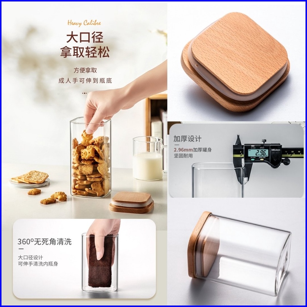 Toples Kaca Tutup Bamboo Kotak Toples Bumbu Toples Makanan Toples Snack Toples Kue Kering Air Tight