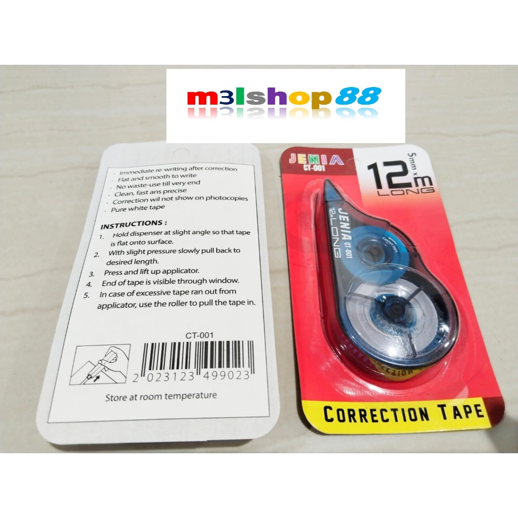 Correction Tape / Tipex Roll / Tipex Kertas 12 Mtr JENIA-12 Pcs