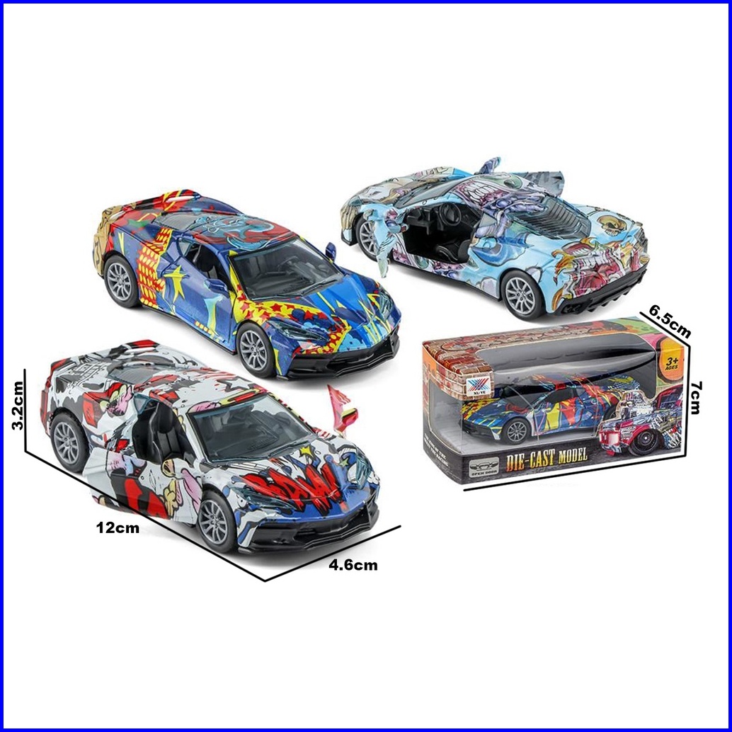 1 32 Tattoo Decal Pattern Sport Car Alloy Model Mobil Pull Back Collection Diecast Ferrari Lambo Buggatti Gtr Porsche Ke