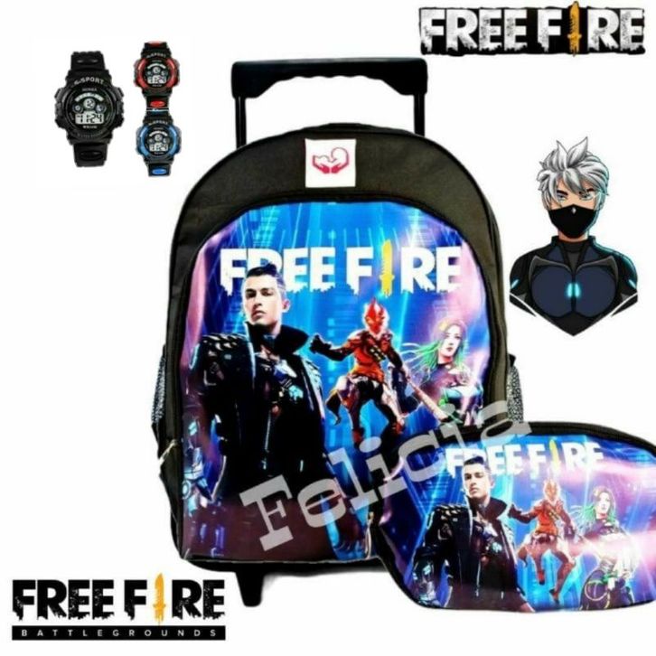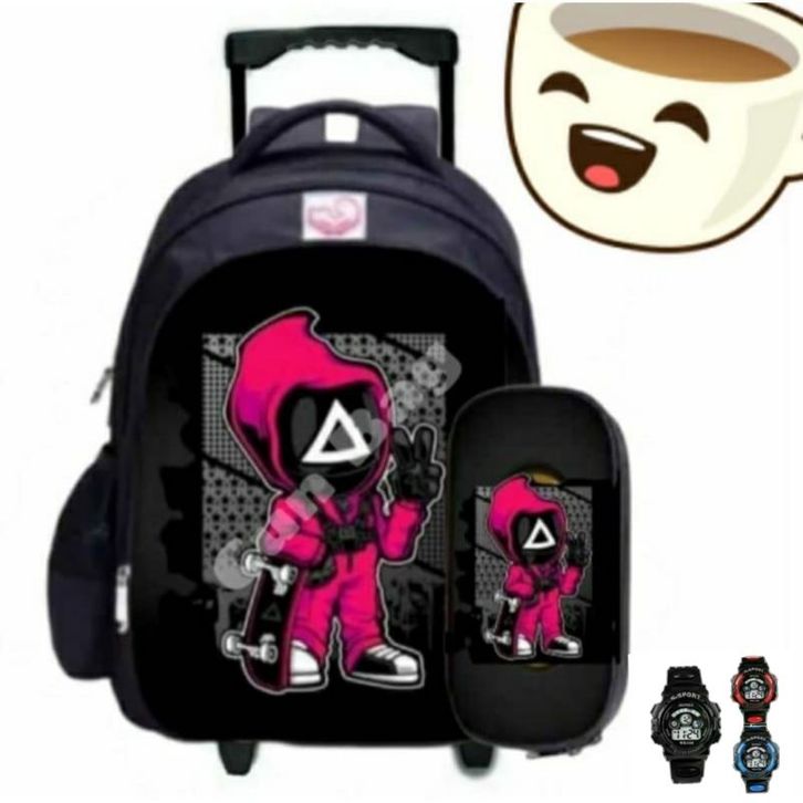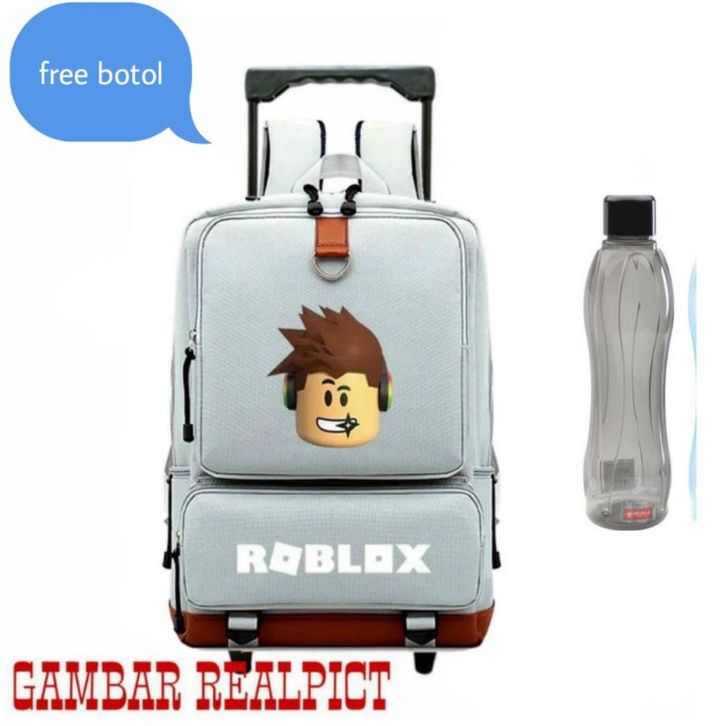 Tas troli anak laki laki Tas Ransel Troly Karakter Roblok/Amoung US bonus jam tangan terpopuler Ransel anak dorong Roda