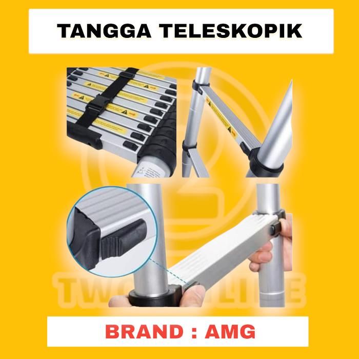 Promo Tangga Lipat Aluminium Teleskopik 6M Single Telescopic Ladder 6 Meter - hitam biru Promo