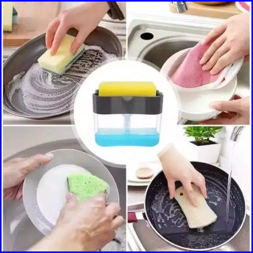 Dispenser Spon Sabun Cuci Piring Pump Tempat Sabun Holder Spons Sikat
