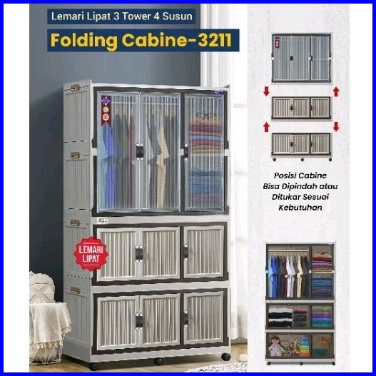 Lemari Pakaian Plastik Hambalan Gantung Minimalis Modern Pakai Roda Folding Cabine-3211 Napolly