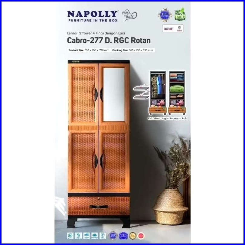 Lemari Plastik Baju Pakaian Napolly Anyaman Rotan Cabro-277 D