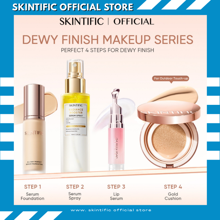 SKINTIFIC OFFICIAL STORE Makeup Series Set Serum Foundation & Instant Glowing Setting & Finishing Spray Makeup & Lip
