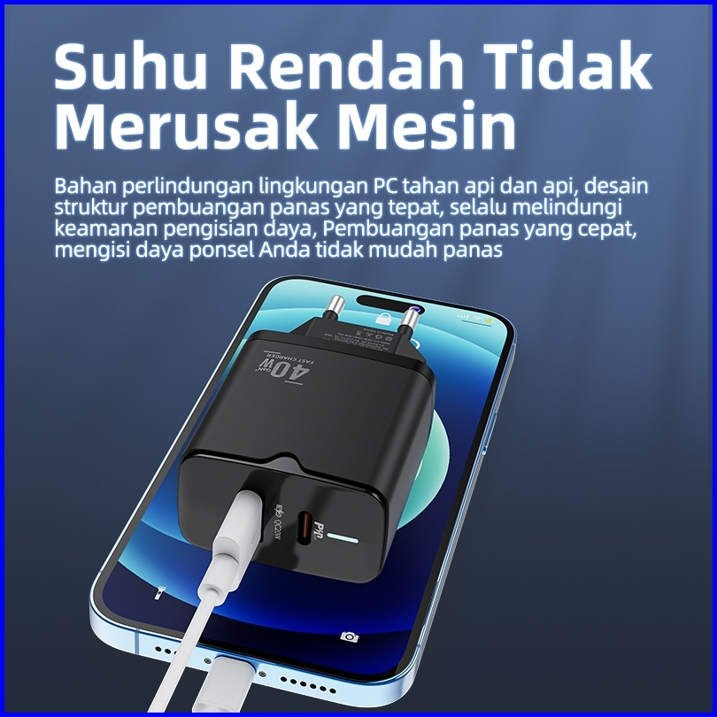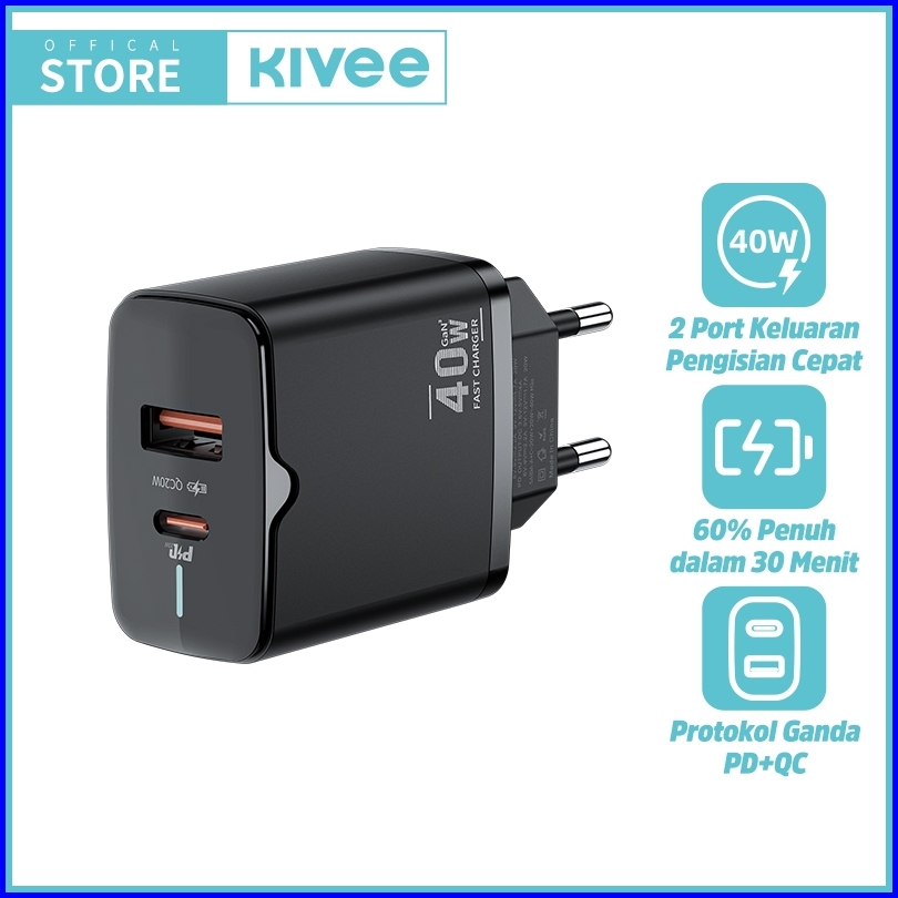 Kivee Kepala Charger Iphone Fast Charging Pd20w Type-c Usb 40w Garansi Asli 1 Tahun