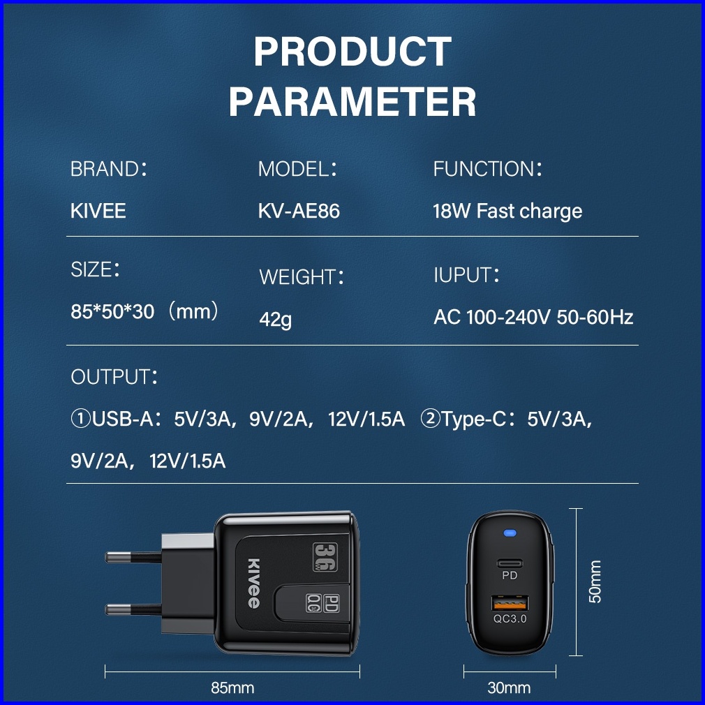 Hot Kivee Charger Type C Usb Fast Charging 36w Dual Output Original