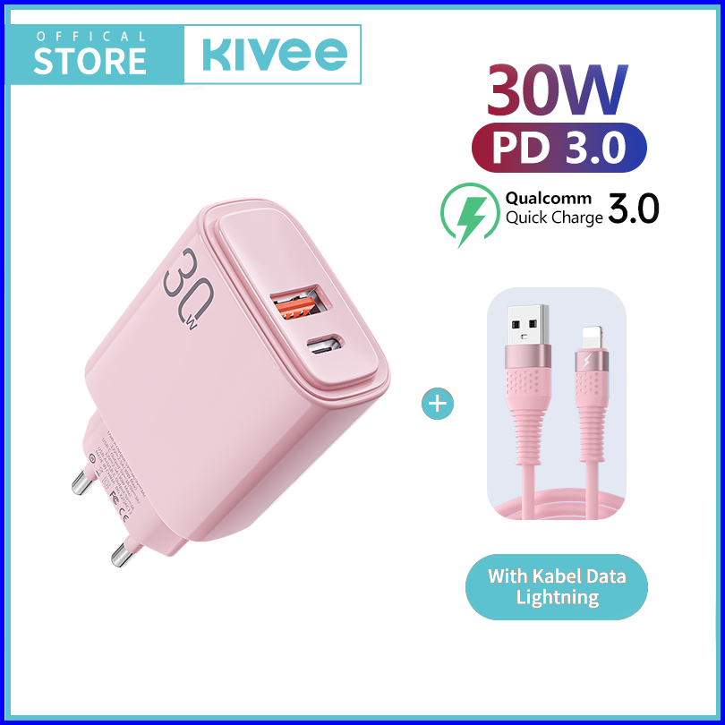 Hot Kivee Charger Iphone Fast Charging 30w Dual Port Macaron For Samsung Xiaomi