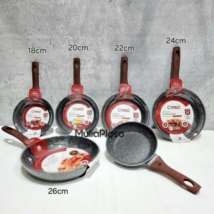 Teflon Teflon CYPRUZ Fry Pan Marble induksi anti lengket diameter 18cm , 20cm ,22cm , 24cm,26cm. PFOA Free , SNI