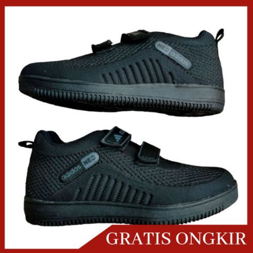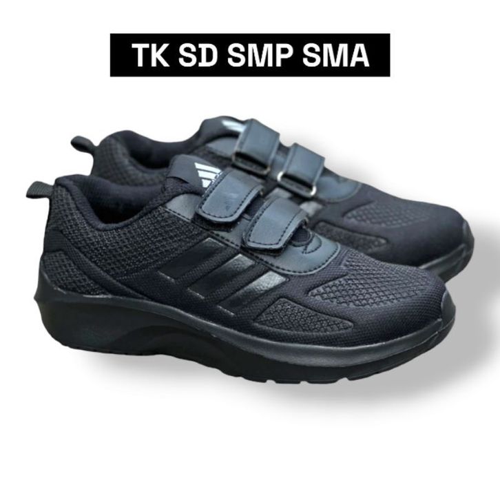 sepatu sekolah anak laki-laki perempuan TK SD SMP SMA Full Hitam 30-43