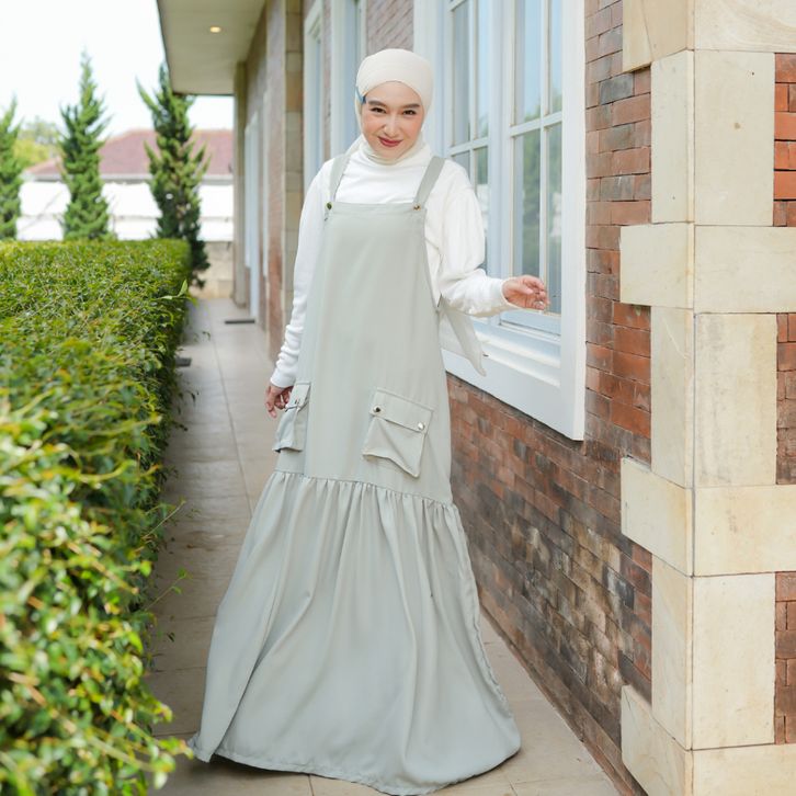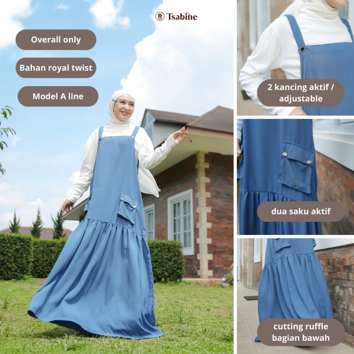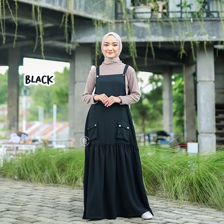 Dres Korea Tsabine - Yuriko Overall Gamis Wanita Kancing Baju Kodok Polos Korean Style Kekinian Overall Only