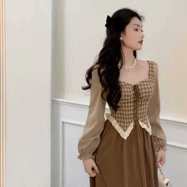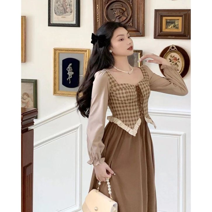 Dres Korea Dress Retro Lengan Panjang Korea Vintage